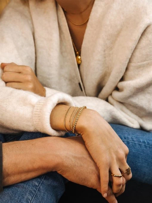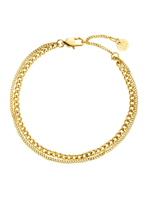 Unser “Double Trouble” Armband begeistert mit seiner absolut trendstarken Layer-Optik. Der Layering Look ist zurzeit top aktuell und macht die modische Armkette “Double Trouble” zum perfekten Allrounder für deinen Alltag, der zu jedem Outfit passt. Egal ob einzeln getragen oder in Kombination mit weiteren Armbändern in einem coolen Stacking Look. Außerdem ist “Double Trouble” aus hochwertigem Edelstahl, auch Chirurgenstahl genannt, gefertigt, welcher besonders widerstandsfähig ist. Passend zum Armband gibt es auch die gleichnamige Kette “Double Trouble”. Das Armband ist zudem individuell längenverstellbar und in zwei verschiedenen Ausführungen erhältlich: 18K Gelbgold vergoldet und Silber.