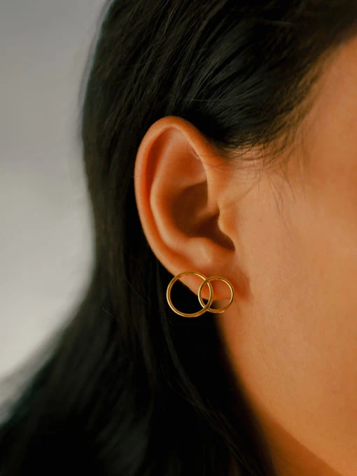 Unsere eleganten und klassischen Ohrringe „Round and Round“ sind mit ihren geradlinigen, geometrischen Formen die perfekten Ohrstecker für besondere Anlässe.